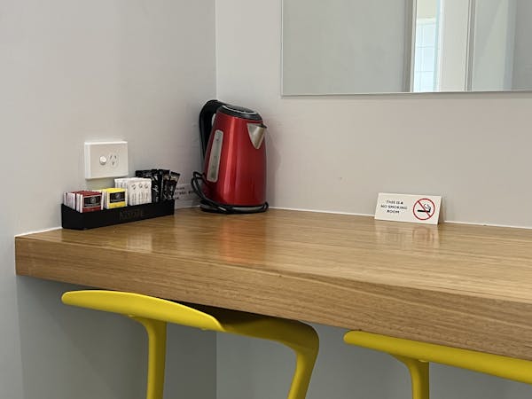 Standard Twin Room. Twin Room rates are for 3 people. Maximum occupancy is 3. Bedding Configuration is 1 Queen bed and 1 Single bed. Fully air-conditioned, microwave, mini fridge, toaster, kettle, plates, cutlery, tea/coffee, flat-screen TV with free to air channels and FREE wireless internet access.
